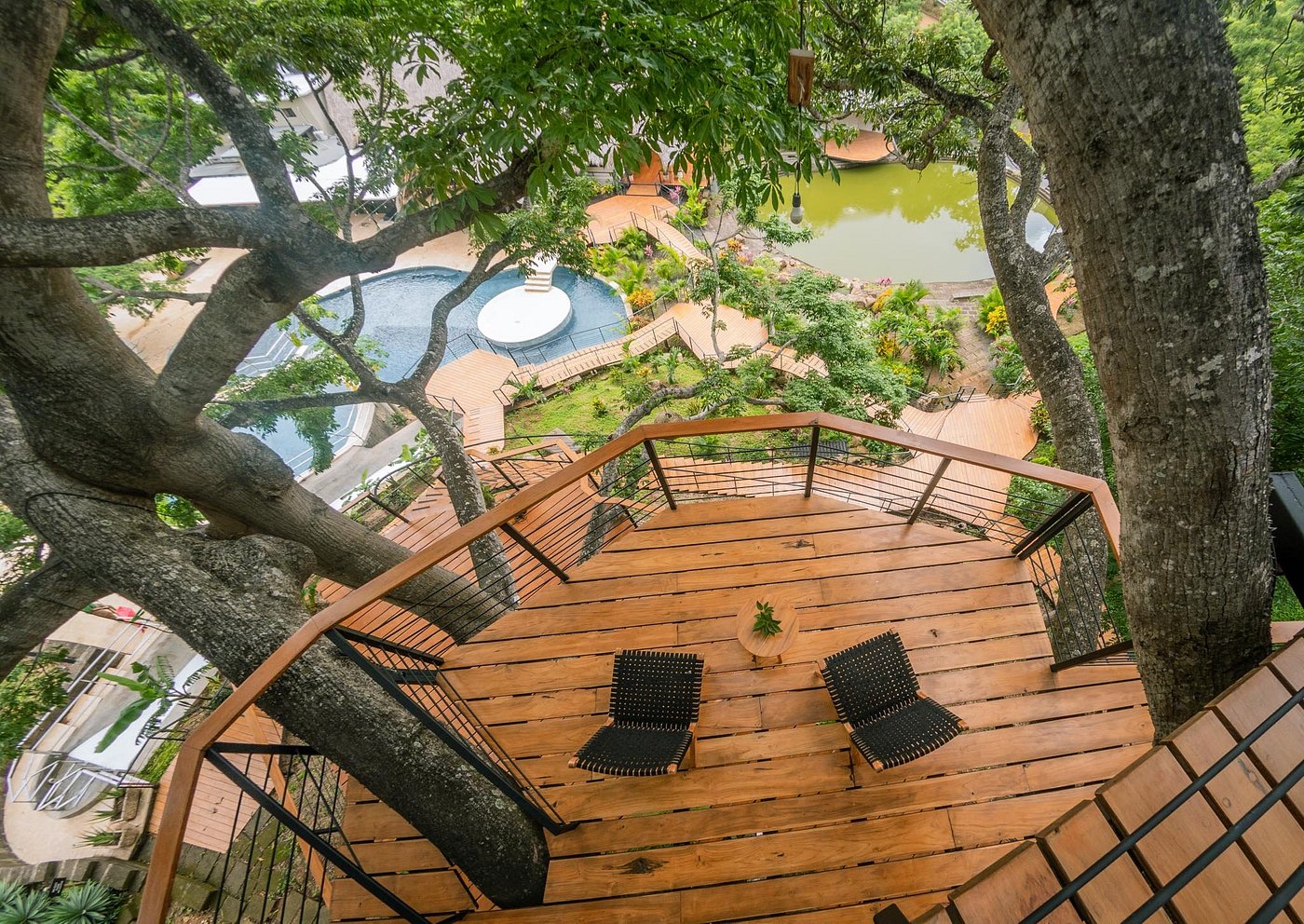 The entire Treecasa campus is your playground to explore, unwind, revitalize and rediscover your true nature. Here you will find 20 miles of hiking and biking trails, magnificent gardens, a pond, multi-tiered pool with a waterslide, a farm-to-table restaurant, and spiraling staircases that lead you to treehouse lounges perched in the sky.